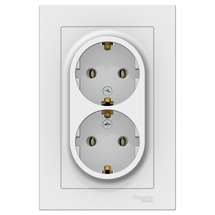 Розетка Schneider Electric AtlasDesign ATN000124 двухместная с заземлением белая предназначена для подключения к электросети различных бытовых электроприборов переменного тока с номинальным напряжением 250 В, частотой 50 Гц и номинальным током 16 А. Степень защиты от проникновения твердых тел и жидкости: IP 20.