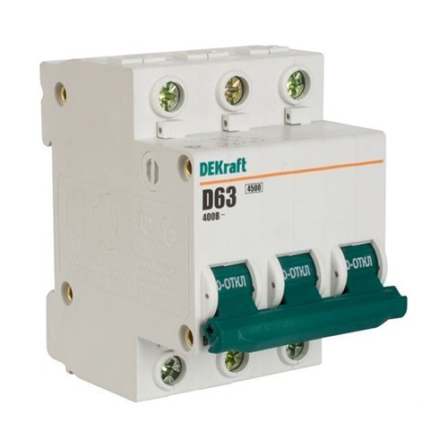 Автоматический выключатель DEKraft ВА-101 3п D 63А 4.5кА предназначен для применения в электрических цепях переменного тока с целью их защиты при перегрузках и токах короткого замыкания (КЗ). Также может использоваться для нечастых оперативных включения и отключений указанных цепей. Устанавливаются в вводно-распределительных устройствах, распределительных щитках (квартирных и этажных), в электрощитах общественных зданий - детских дошкольных учреждениях, учебных учреждениях, спортивных центрах, гостиницах, санаториях, ресторанах, магазинах, АЗС, административных зданиях, производственных помещениях и т.д.