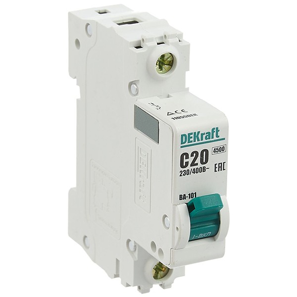 Автоматический выключатель DEKraft ВА-101 1п C 20А 4.5кА предназначен для применения в электрических цепях переменного тока с целью их защиты при перегрузках и токах короткого замыкания (КЗ). Также может использоваться для нечастых оперативных включения и отключений указанных цепей. Устанавливаются в вводно-распределительных устройствах, распределительных щитках (квартирных и этажных), в электрощитах общественных зданий - детских дошкольных учреждениях, учебных учреждениях, спортивных центрах, гостиницах, санаториях, ресторанах, магазинах, АЗС, административных зданиях, производственных помещениях и т.д.