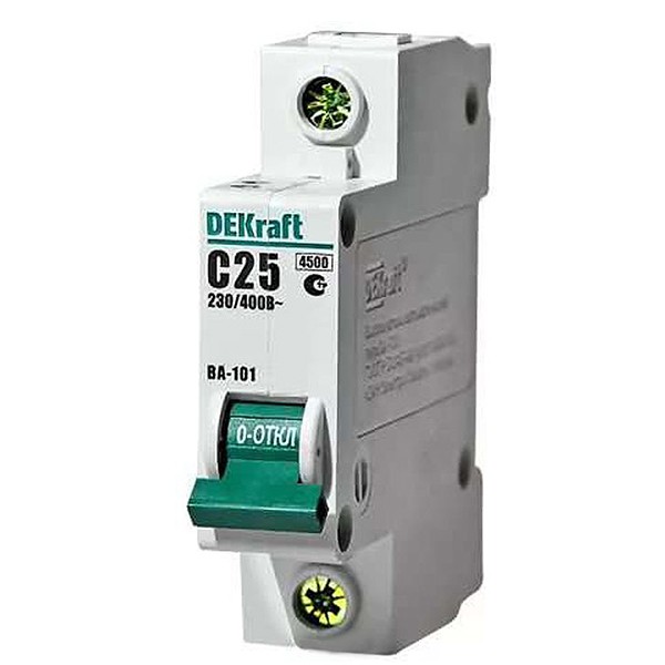Автоматический выключатель DEKraft ВА-101 1п C 25А 4.5кА предназначен для применения в электрических цепях переменного тока с целью их защиты при перегрузках и токах короткого замыкания (КЗ). Также может использоваться для нечастых оперативных включения и отключений указанных цепей. Устанавливаются в вводно-распределительных устройствах, распределительных щитках (квартирных и этажных), в электрощитах общественных зданий - детских дошкольных учреждениях, учебных учреждениях, спортивных центрах, гостиницах, санаториях, ресторанах, магазинах, АЗС, административных зданиях, производственных помещениях и т.д.