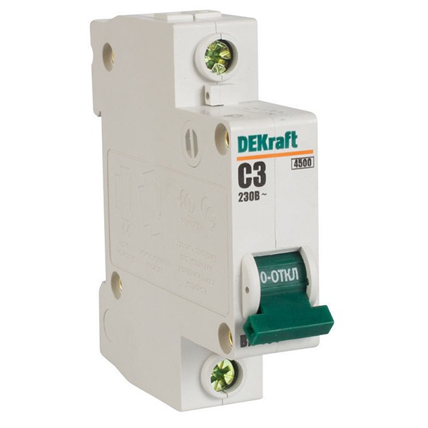 Автоматический выключатель DEKraft ВА-101 1п C 3А 4.5кА предназначен для применения в электрических цепях переменного тока с целью их защиты при перегрузках и токах короткого замыкания (КЗ). Также может использоваться для нечастых оперативных включения и отключений указанных цепей. Устанавливаются в вводно-распределительных устройствах, распределительных щитках (квартирных и этажных), в электрощитах общественных зданий - детских дошкольных учреждениях, учебных учреждениях, спортивных центрах, гостиницах, санаториях, ресторанах, магазинах, АЗС, административных зданиях, производственных помещениях и т.д.