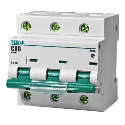 Автоматический выключатель DEKraft ВА-201 3п C 80А 10кА служит для защиты электрических цепей от перегрузок и токов короткого замыкания. Применяется во вводно-распределительных щитах жилых и административных зданий, а также в промышленности.