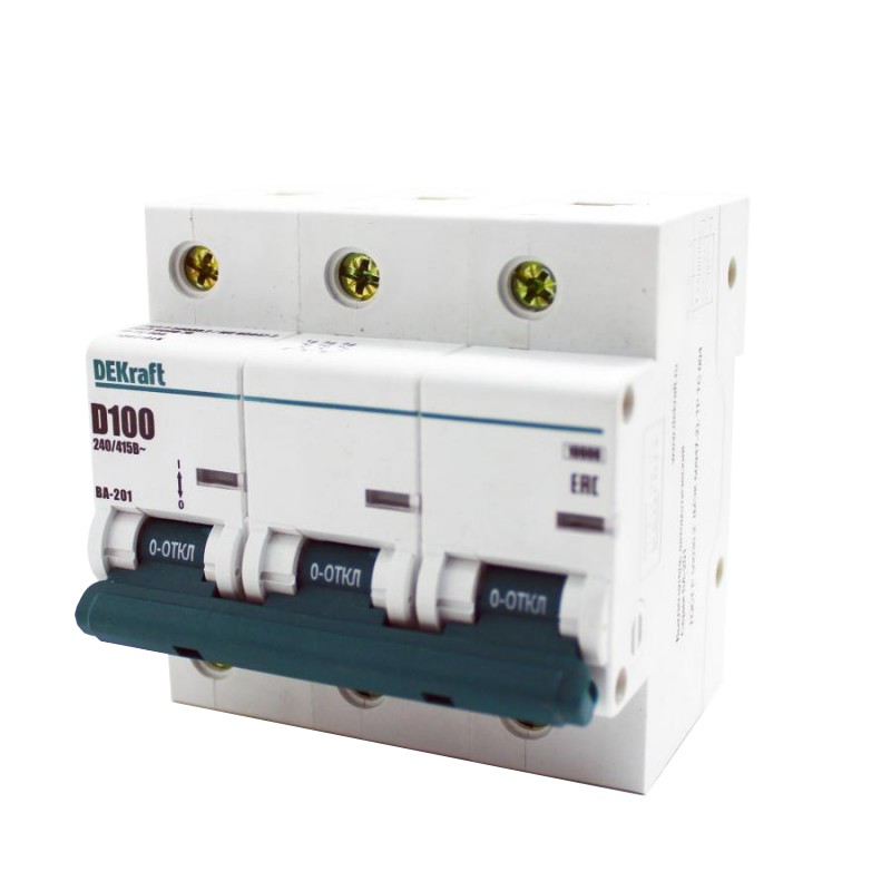 Автоматический выключатель DEKraft ВА-201 3п D 100А 10кА служит для защиты электрических цепей от перегрузок и токов короткого замыкания. Применяется во вводно-распределительных щитах жилых и административных зданий, а также в промышленности.