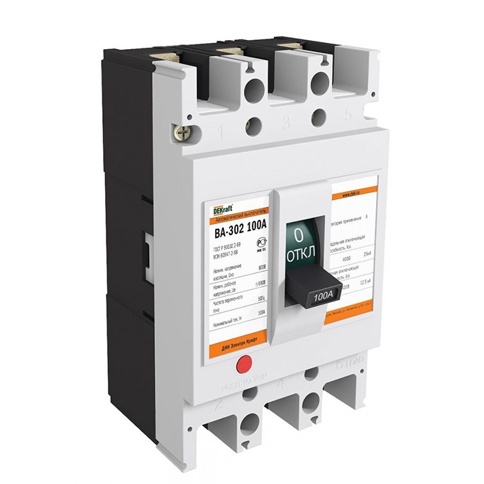 Автоматический выключатель DEKraft ВА-302 100А 25кА имеет компактные размеры, с лёгкостью могжет быть установлен в любой электротехнический шкаф и сохранит допустимые рабочие характеристики, даже под воздействием повышенных температур. Устройство этой категории безопасно для окружающей среды.