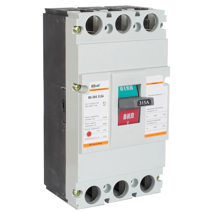 Автоматический выключатель DEKraft ВА-304 315А 35кА имеет компактные размеры, с лёгкостью могжет быть установлен в любой электротехнический шкаф и сохранит допустимые рабочие характеристики, даже под воздействием повышенных температур. Устройство этой категории безопасно для окружающей среды.