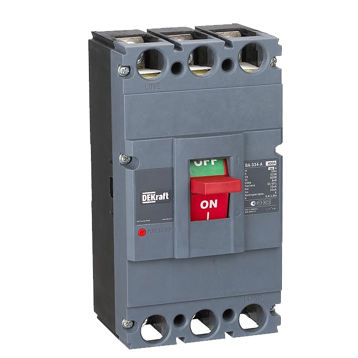 Автоматический выключатель DEKraft ВА-334-А 400А 70кА предназначены для использования в силовых распределительных цепях напряжением до 690В (50Гц~) для распределения электрической энергии, а также защиты цепей и оборудования от повреждений, которые могут возникнуть из-за перегрузок, токов короткого замыкания и пониженного напряжения. Автоматические выключатели в литом корпусе ВА-330 А имеют регулируемый термомагнитный расцепитель.