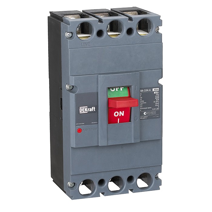 Автоматический выключатель DEKraft ВА-334 АЕ с электронным расцепителем 400А 70кА предназначен для использования в силовых распределительных цепях напряжением до 690В (50Гц~) для распределения электрической энергии, а также защиты цепей и оборудования от повреждений, которые могут возникнуть из-за перегрузок, токов короткого замыкания и пониженного напряжения.