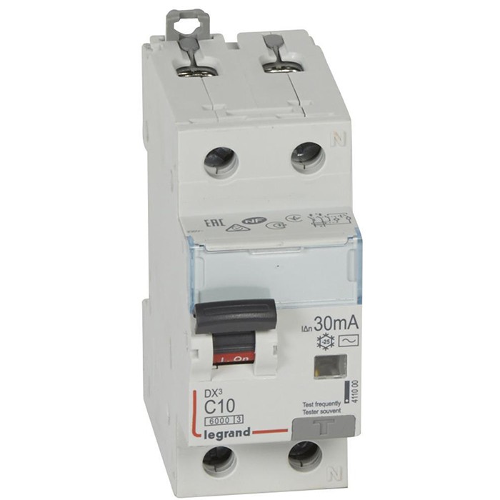 Автоматический выключатель дифференциального тока Legrand АВДТ DX3 411000 (1P+N) C 10A 30mA предназначенный для включения и отключения токов при нормальных условиях эксплуатации, а также размыкания контактов в случае, когда значение дифференциального тока достигает заданной величины в определенных условиях.