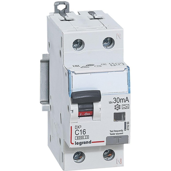Автоматический выключатель дифференциального тока Legrand АВДТ DX3 411050 (1P+N) C 16A 30mA предназначенный для включения и отключения токов при нормальных условиях эксплуатации, а также размыкания контактов в случае, когда значение дифференциального тока достигает заданной величины в определенных условиях.