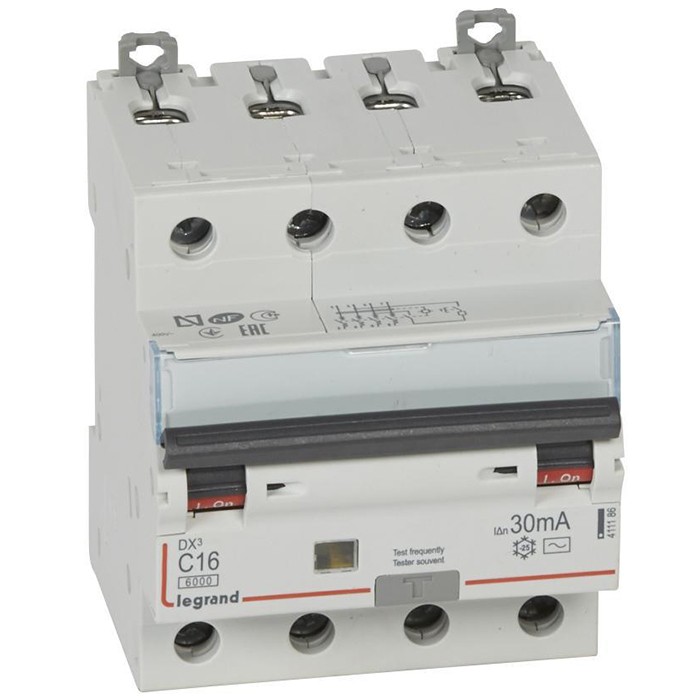 Автоматический выключатель дифференциального тока Legrand АВДТ DX3 411186 4P C 16A 30mA предназначенный для включения и отключения токов при нормальных условиях эксплуатации, а также размыкания контактов в случае, когда значение дифференциального тока достигает заданной величины в определенных условиях.