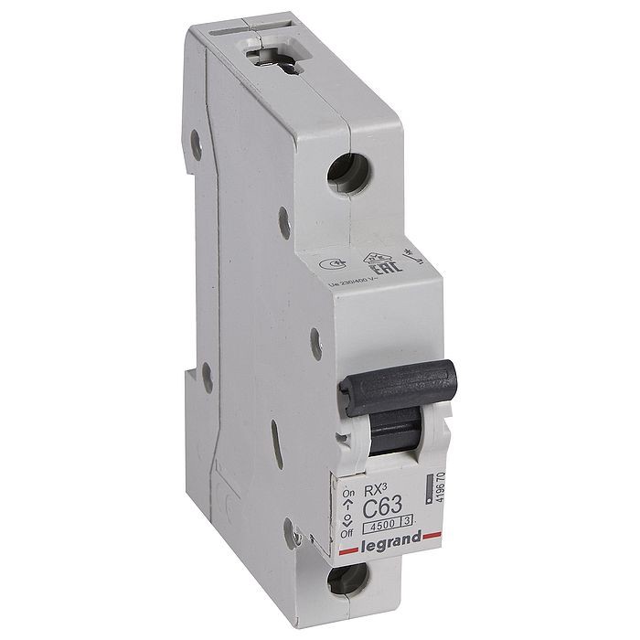 Автоматический выключатель Legrand RX3 419670 1P C 63A 4,5 кА предназначен для использования в электрических сетях для защиты от перегрузочных явлений и сверх высоких токов, возникающих при коротких замыканиях. Автоматический выключатель имеет отключающую способность токов короткого замыкания в 4,5кА, что более чем достаточно для их использования в частных домах, коттеджах, квартирах, офисах и небольших производствах. Для профессиональных целей они подойдут, если не предполагается подключение дополнительных устройств – независимого расцепителя, расцепителя минимального напряжения, различных дополнительных контактов.