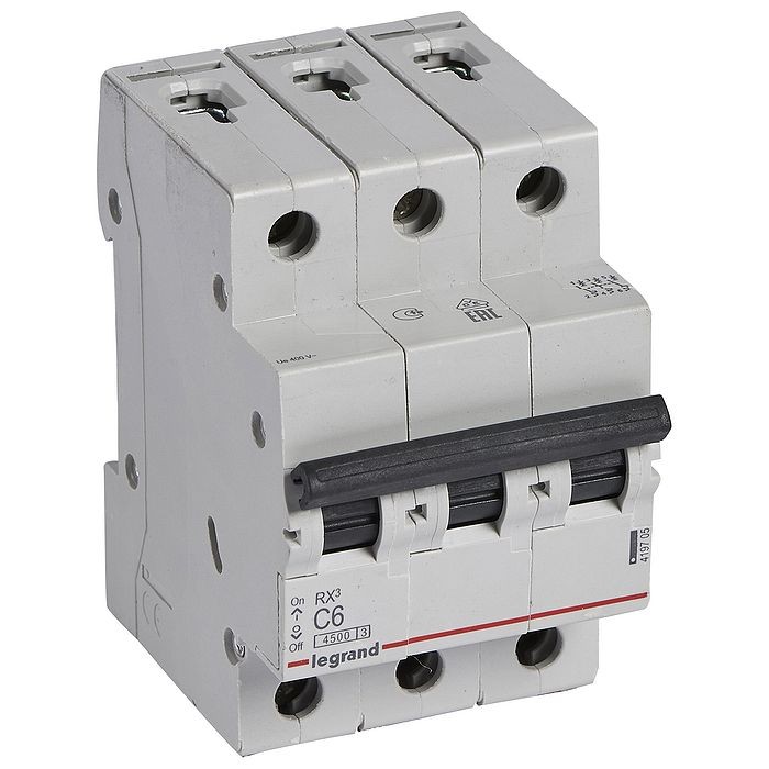 Автоматический выключатель Legrand RX3 419705 3P C 6A 4,5 кА предназначен для использования в электрических сетях для защиты от перегрузочных явлений и сверх высоких токов, возникающих при коротких замыканиях. Автоматический выключатель имеет отключающую способность токов короткого замыкания в 4,5кА, что более чем достаточно для их использования в частных домах, коттеджах, квартирах, офисах и небольших производствах. Для профессиональных целей они подойдут, если не предполагается подключение дополнительных устройств – независимого расцепителя, расцепителя минимального напряжения, различных дополнительных контактов.
