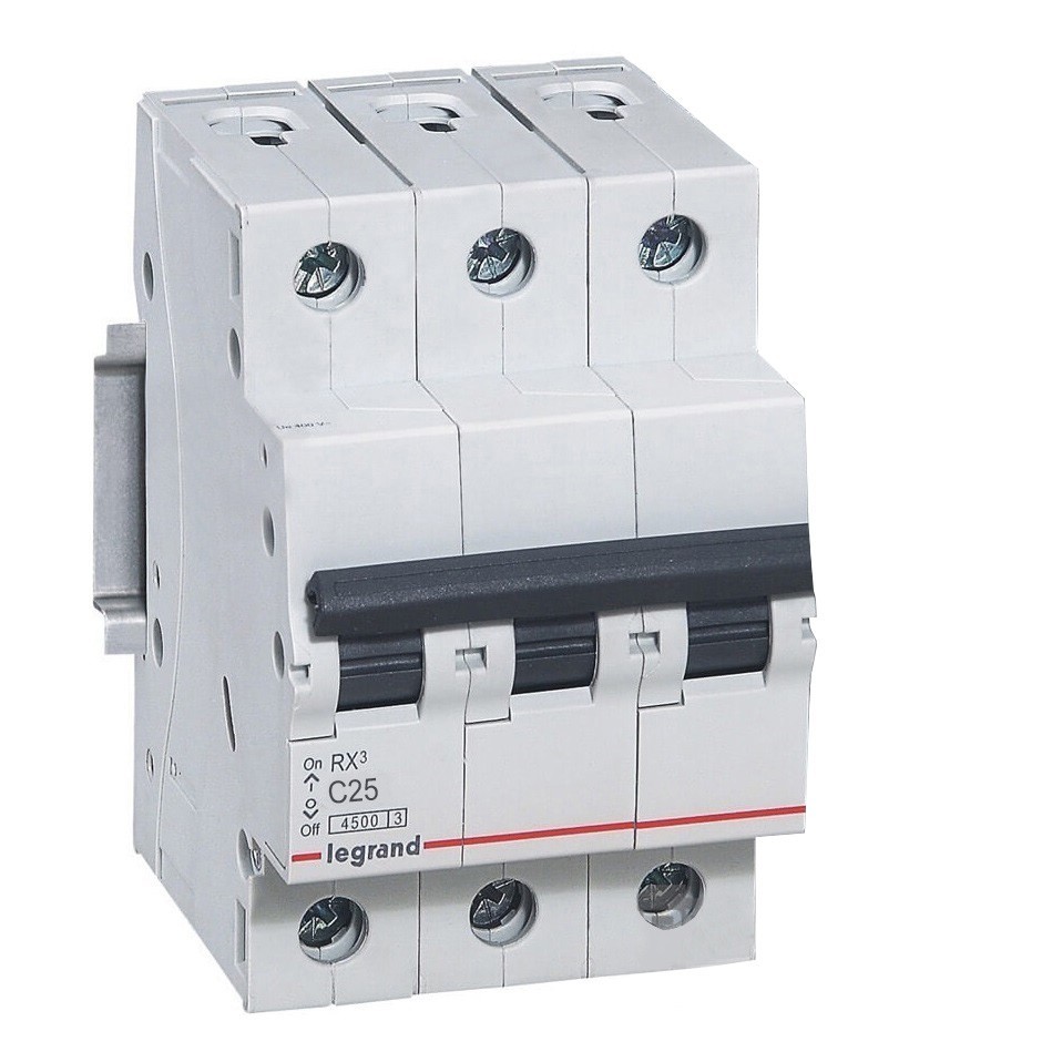 Автоматический выключатель Legrand RX3 419710 3P C 25A 4,5 кА предназначен для использования в электрических сетях для защиты от перегрузочных явлений и сверх высоких токов, возникающих при коротких замыканиях. Автоматический выключатель имеет отключающую способность токов короткого замыкания в 4,5кА, что более чем достаточно для их использования в частных домах, коттеджах, квартирах, офисах и небольших производствах. Для профессиональных целей они подойдут, если не предполагается подключение дополнительных устройств – независимого расцепителя, расцепителя минимального напряжения, различных дополнительных контактов.