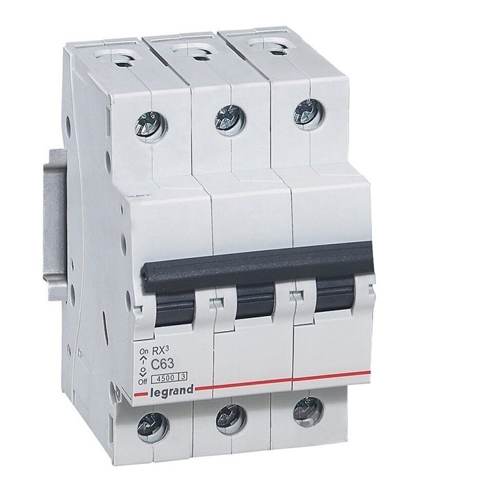 Автоматический выключатель Legrand RX3 419714 3P C 63A 4,5 кА предназначен для использования в электрических сетях для защиты от перегрузочных явлений и сверх высоких токов, возникающих при коротких замыканиях. Автоматический выключатель имеет отключающую способность токов короткого замыкания в 4,5кА, что более чем достаточно для их использования в частных домах, коттеджах, квартирах, офисах и небольших производствах. Для профессиональных целей они подойдут, если не предполагается подключение дополнительных устройств – независимого расцепителя, расцепителя минимального напряжения, различных дополнительных контактов.