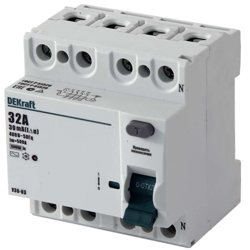 Выключатель дифференциального тока DEKraft УЗО-03 4п 32А 30мА тип AC 6кА (также называемые ВДТ - автоматическими Выключателями Дифференциального Тока без защиты от сверхтоков) применяются для защиты человека от поражения электрическим током при контакте с токопроводящими частями. Они также служат для защиты электроустановок от риска возникновения пожаров вследствие утечек тока.