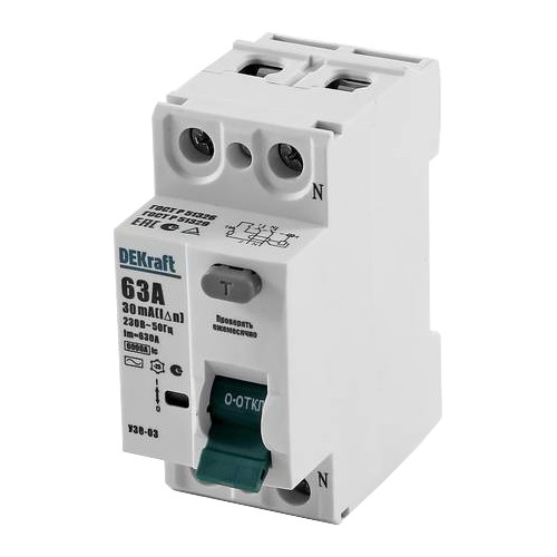 Выключатель дифференциального тока DEKraft УЗО-03 2п 63А 30мА тип AC 6кА (также называемые ВДТ - автоматическими Выключателями Дифференциального Тока без защиты от сверхтоков) применяются для защиты человека от поражения электрическим током при контакте с токопроводящими частями. Они также служат для защиты электроустановок от риска возникновения пожаров вследствие утечек тока.