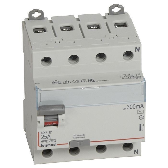 Выключатель дифференциального тока Legrand DX3 411722 4P AC 25А 300мА предназначенный для включения, проведения и отключения токов при нормальных условиях эксплуатации, а также размыкания контактов в случае, когда значение дифференциального тока достигает заданной величины в определенных условиях. Применяется в жилых помещениях, на коммерческих и промышленных объектах. Возможность оснащения вспомогательными устройствами и дополнительными принадлежностями для устройств серии DX3.
