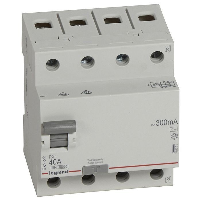 Выключатель дифференциального тока Legrand RX3 402071 4P AC 40А 300мА управляемый дифференциальным переменным током, без встроенной защиты от сверхтока с непосредственным указанием положения главных контактов предназначен для управления нагрузками и разъединения электрических цепей, защиты людей от прямого и косвенного прикосновения и защиты электроустановок от нарушения изоляции. Применяется в жилых помещениях, на коммерческих и промышленных объектах. Установка вспомогательных устройств не предусмотрена.