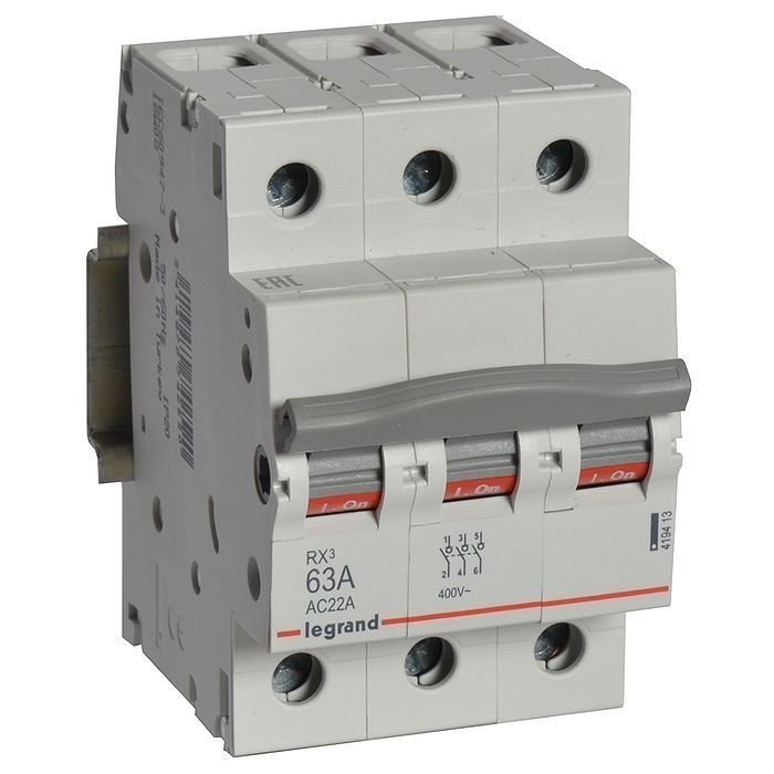 Выключатель-разъединитель Legrand RX3 419413 3P 63А обеспечивает разъединение и изоляцию электрических цепей под нагрузкой. Помимо этого, разъединитель переменного тока нужен для создания видимого разрыва цепи, если отключается питание линии. Так как промежуток между контактами выключателя довольно мал и при определенных условиях может возникнуть пробой, а также с учетом того, что в отключенном состоянии пружины включения контаков взведены и могут сорваться, то в цепи отключенной выключателями создают принудительно дополнительный разрыв с помощью разъединителей. Выключатель-разъединитель имеет увеличенную износостойкость (10000 электрических и 20000 механических операций).