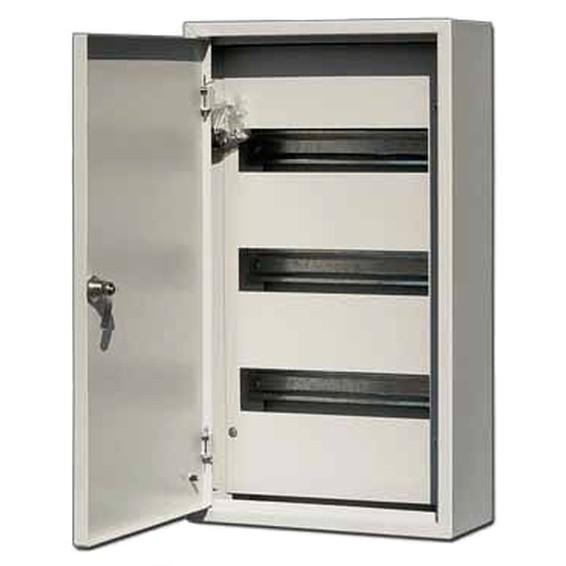 Корпус металлический навесной DEKraft ЩРН-45 IP31 45-ти модульный предназначен для установки модульной аппаратуры, для ввода и распределения электроэнергии. Тип покрытия порошковая шагрень.