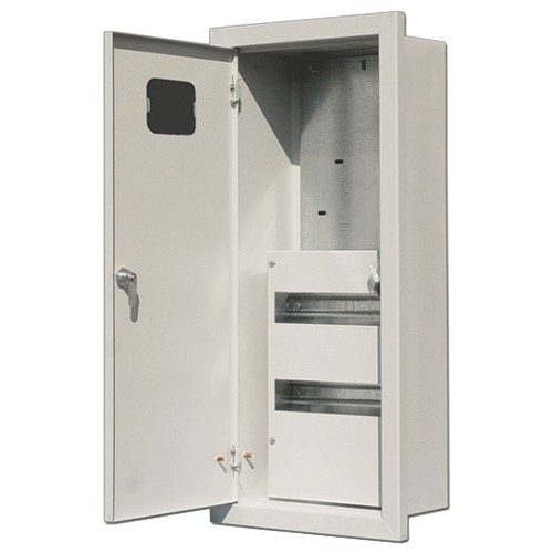 Щит имеет монтажную панель для крепления трехфазного счетчика, ДИН-рейки для установки соответствующего количества электроаппаратов, шпильку заземления как на дверце, так и на корпусе (соответствие требованиям Техэнергонадзора), и запирающуюся на ключ наружную дверцу.