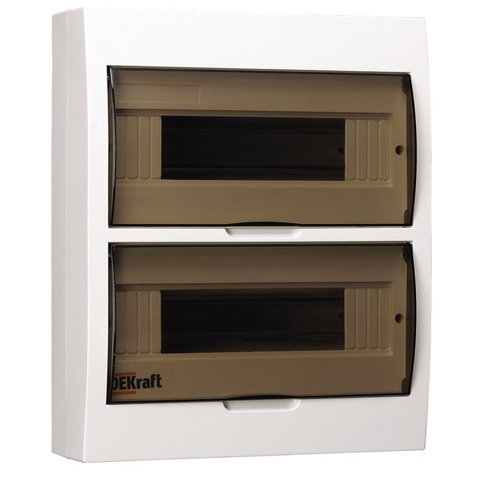 Корпус пластиковый навесной DEKraft ЩРН-П-24 IP41 24-ти модульный применяется для установки модульной аппаратуры, таймеров, устройств управления освещением и т.п. Используется для монтажа в жилых, административных,торговых и производственных зданий. Надежная, элегантная конструкция, прочный самозатухающий ABS пластик, удобный монтаж гарантируют долгий срок службы электротехническому оборудованию.