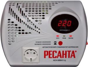 Стабилизатор напряжения Ресанта предназначен для лёгких работ по стабилизации напряжения в сети. Простой инструмент может питать несколько бытовых приборов общей мощностью не более 500 Вт. Частота тока при этом должна составлять 50–60 Гц. Инструмент предназначен для размещения на стене. Входное напряжение нестабильной сети может составлять от 140 В до 260 В. Инструмент обеспечивает своих потребителей стабильным напряжением 220 В с погрешностью не более ±8%, чего вполне достаточно для бытового использования. Стабилизацию в автоматическом режиме производят сетевые фильтры входного и выходного напряжения, а также современный микропроцессор. Безопасность также обеспечивается в автоматическом режиме. Специальные контроллеры отключают модель и/или потребителей, когда напряжение на входе падает ниже 140 В или возрастает выше 260 В, в случае возникновения короткого замыкания, сильного перегрева внутри корпуса. Присутствует высоковольтная защита от напряжения 260±5 В.