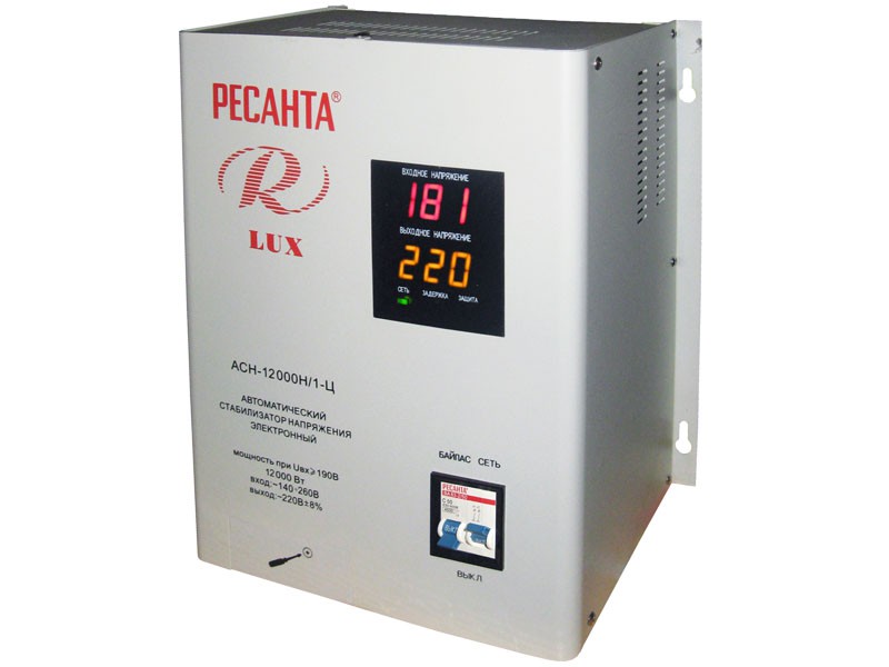 Однофазный цифровой стабилизатор РЕСАНТА АСН-12000Н/1-Ц Lux - это бытовой прибор, к которому можно подключить потребитель мощностью до 12000 Вт. Прибор обеспечивает сохранность потребителя в случае скачков напряжения в сети электроснабжения или при коротком замыкании.