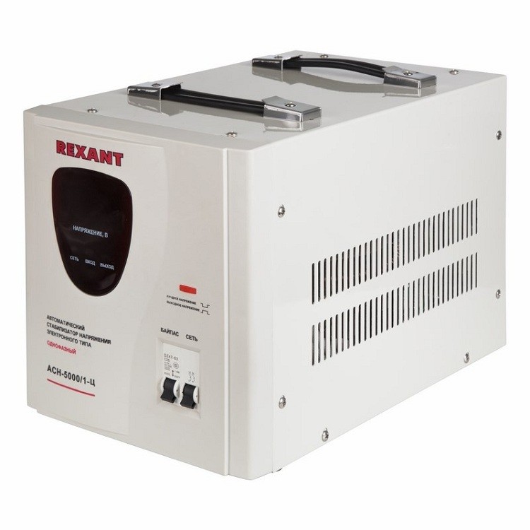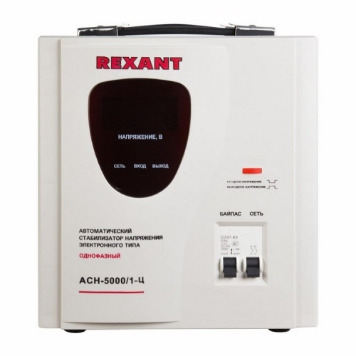 Стабилизатор напряжения Rexant АСН-5000/1-Ц предназначен для обеспечения качественной работы различных бытовых устройств, защиты их от перепадов напряжения в сети и короткого замыкания. Это незаменимое устройство для дома, дачи или офиса. Однофазный стабилизатор защитит приборы от преждевременного износа и регулярных поломок. Главными преимуществами подобных устройств являются высокая скорость реакции, компактные размеры и продолжительный срок эксплуатации.