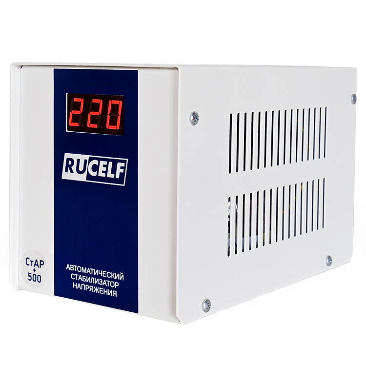 Стабилизатор Rucelf СтАР 500+ предназначен для стабилизации напряжения в однофазных сетях для питания электроприборов бытового назначения 220В, 50Гц. Данная серия стабилизаторов напряжения разработана для защиты котельного оборудования и других устройств при перепадах входного напряжения от 130 до 265 В.
