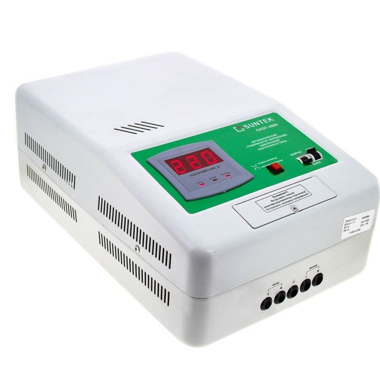 Стабилизатор напряжения Suntek 3000 ВА - популярное решение стабилизации напряжения для климатической техники, стиральных машин (как бытового уровня, так и профессионального), приборов подверженных повышенному износу при перепадах напряжения.