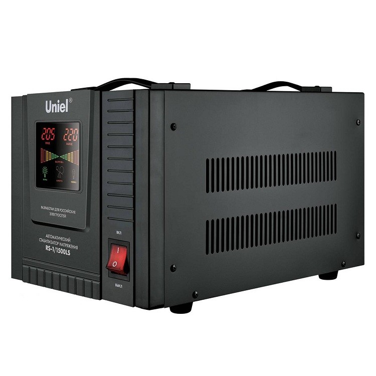 Uniel RS-1/1500LS – релейный стабилизатор переменного напряжения электронного типа с цифровой индикацией. Он станет отличным решением для питания устройств однофазным напряжением синусоидальной формы, соответствующим требованиям ГОСТ 13109-97. Стабилизатор серии RS-1 (с расширенным диапазоном входного напряжения) подойдет для защиты приборов различной мощности от колебаний напряжения электросети в диапазоне от 70 В до 275 В.