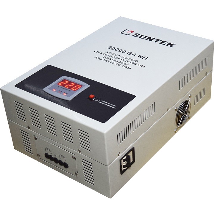 Стабилизатор пониженного напряжения Suntek 20000ВА-НН широко применим при сильной просадке напряжения для питания приборов мощностью до 20кВт.