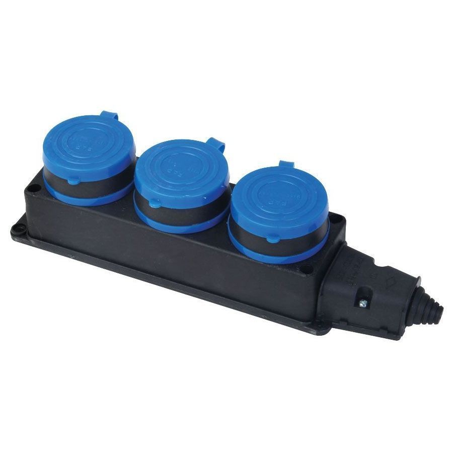 Колодка каучуковая FAR F100 3 розетки с заземлением и заглушкой предназначена для подключения к электросети приборов, удаленных от стационарной розетки, подходит как для продолжительного многократного использования, так и для кратковременных подключений к питающей сети.