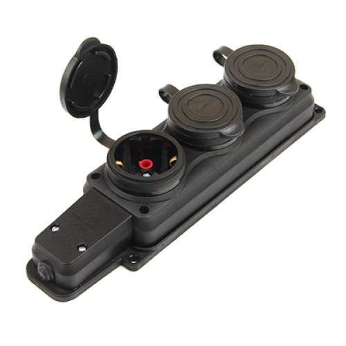 Колодка каучуковая FAR F280 3 розетки с заземлением с заглушками предназначена для подключения к электросети приборов, удаленных от стационарной розетки, подходит как для продолжительного многократного использования, так и для кратковременных подключений к питающей сети.