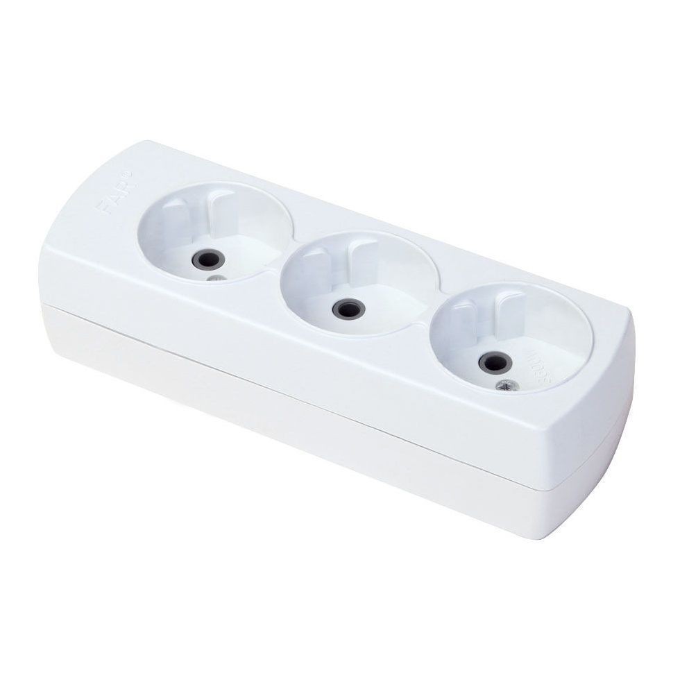 Колодка удлинителя FAR F200 3 розетки без заземления углубленная применяется для производства удлинителей, а также, благодаря наличию крепежных отверстий на задней крышке корпуса, в качестве блока розеток для открытой установки внутри бытовых и производственных помещений.
