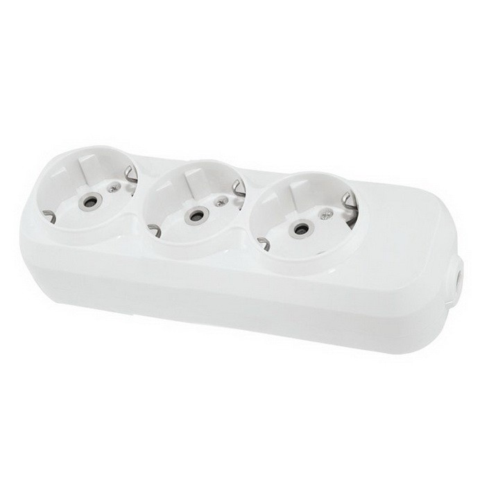 Колодка TDM SQ1806-0417 на 3 розетки с заземлением предназначена для самостоятельной сборки удлинителя или в качестве блоков розеток для установки в бытовых и производственных помещениях. Розеточные гнезда расположены под углом, что очень удобно при подключении большого количества вилок.