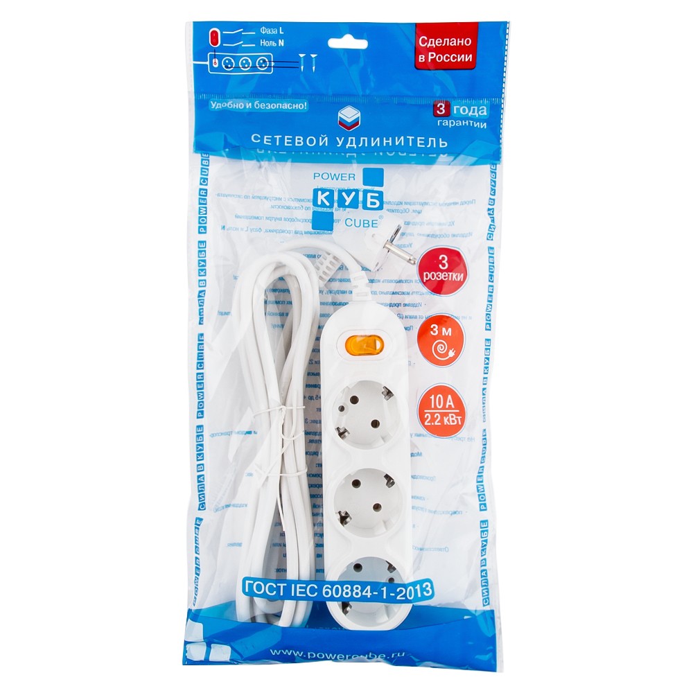 В удлинителях Power Cube используются только провод с чистой медью, соответствующий ГОСТ.