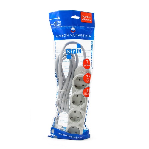Удлинитель Power Cube PC-Y-6-32-3 предназначен для подключения удаленных на расстояние до 3 м от стационарной розетки электроприборов. В сетевых удлинителях Power Cube 4+3 розетки расположены на обеих сторонах корпуса: четыре с заземлением и три розетки без заземления.