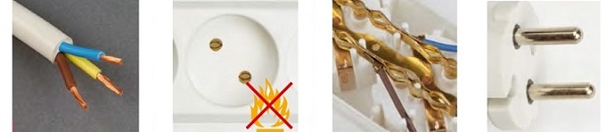 Розетки рассчитаны на подключение вилок диаметром как 4 мм, так и 4,8 мм, что избавляет потребителя от необходимости пользоваться переходниками. Конструкция удлинителя обеспечивает надежный электрический контакт с электроприборами на протяжении всего срока службы.