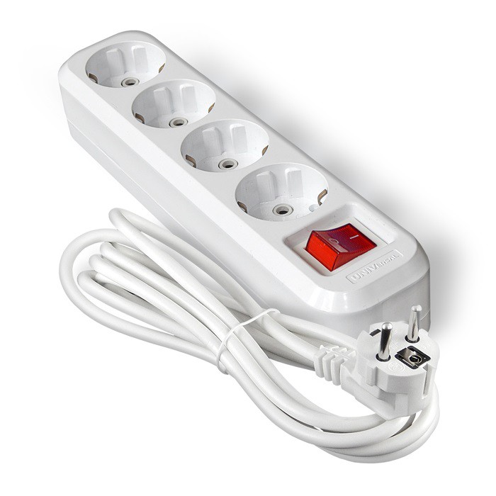 Удлинитель бытовой UNIVersal S-304 9631991 с заземлением и выключателем предназначен для подключения к электросети приборов, удаленных от стационарной розетки, подходит как для продолжительного многократного использования, так и для кратковременных подключений к питающей сети.