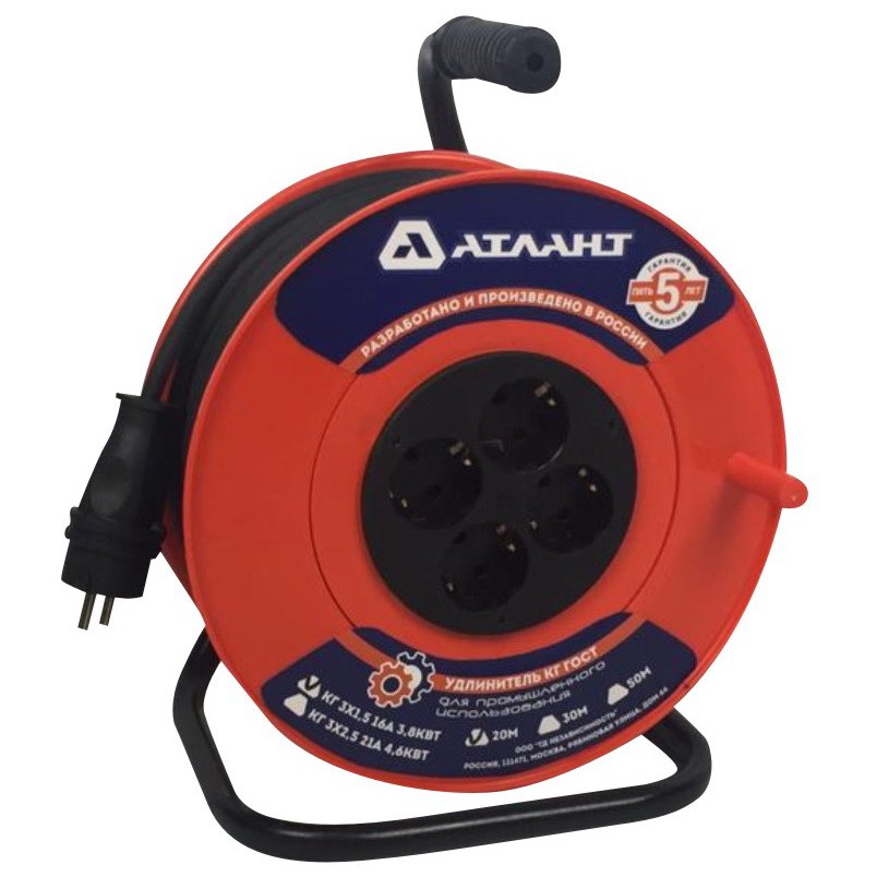 Удлинитель силовой на катушке Атлант КГ 3x1,5 представляет собой катушку из АБС-пластика, с четырьмя розетками имеющей диаметр 260 мм с намотанным проводом - это удобное приспособление для защиты длинного провода от спутывания, его хранении и транспортировки. Удлинитель на катушке используется на строительных площадках, производственных цехах и в бытовых условиях, позволяет присоединить несколько электрических приборов одновременно, где осуществляется работа с электрическим оборудованием, находящимся на большом расстоянии от сети электропитания. На корпусе катушки располагается устойчивая подставка и специальная рукоятка для удобства переноски удлинителя.