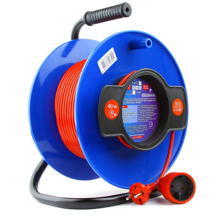 Имеет одно розеточное гнездо и гибкий шнур марки ПВС, армированный штепсельной вилкой. В удлинителях Power Cube используются только провод с чистой медью, соответствующий ГОСТ 28244-96. Катушка оснащена ручкой для удержания и транспортировки удлинителя, а также ручкой для сматывания провода после работы.