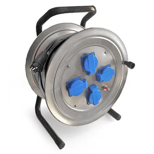 Прочная металлическая катушка, стальная стойка, покрытая порошковой краской, и защищенные крышками гнезда розеток значительно повышают рабочий ресурс изделия.