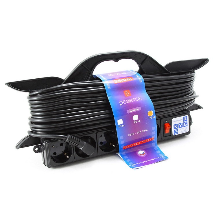 Необходимость рамки на таком приспособлении обусловлена удобством использования, поскольку без нее удлинитель неудобно хранить и переносить, а сам провод может заламываться и путаться. Конструкцией предусмотрена ручка, что позволяет его удобно транспортировать. Практичность эксплуатации обеспечивается оптимальными геометрическими параметрами.