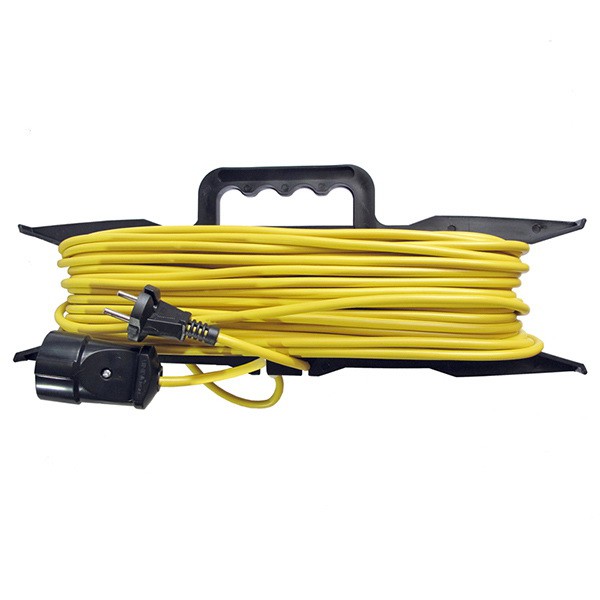 Необходимость рамки на таком приспособлении обусловлена удобством использования, поскольку без нее удлинитель неудобно хранить и переносить, а сам провод может заламываться и путаться. Конструкцией предусмотрена ручка, что позволяет его удобно транспортировать. Практичность эксплуатации обеспечивается оптимальными геометрическими параметрами.