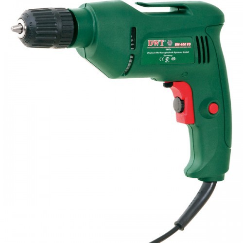 Инструмент позволяет выполнять сверление в различных материалах (металле, древесине, пластике). Дрель DWT BM-400 оснащена следующими конструктивными особенностями: регулятором скорости, что дает возможность устанавливать нужное число оборотов для той или иной работы, переключателем реверса, который дает возможность выбирать направление вращения, очень помогает при выполнении некоторых видов работ, например, при откручивании / закручивании винтов или шурупов а также кнопкой блокировки включения/выключения которая служит для блокировки включателя/выключателя в нажатом положении, что делает продолжительную работу более удобной.