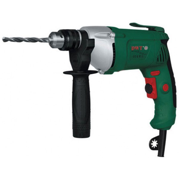 Бытовая дрель DWT BM-710 представляет собой двухскоростной инструмент для выполнения разнообразных сверлильных работ. Изделие оснащено надежным редуктором, металлический корпус которого превосходно отводит тепло и обеспечивает достаточную защиту от пыли и повреждений. Рабочий диапазон вращения составляет 0-700 об/мин, перед началом сверления, пользователь может самостоятельно ограничить максимальную скорость вращения патрона, установив требуемое значение с помощью крутящегося регулятора на выключателе. Частота вращения при работе может плавно изменяться силой нажатия на выключатель.