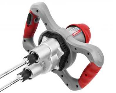Миксер электрический Зубр Эксперт ЗМР-1350Э-2 - инструмент профессионального назначения для приготовления строительных смесей различной вязкости и состава. Мощная высокопроизводительная модель на 1350 В. Работая двумя насадками одновременно, перемешивает до 170 литров за одно применение.