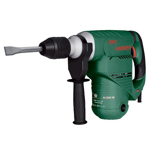 Отбойный молоток DWT H-1200 VS BMC - специальный электроинструмент ударного действия для долбления отверстий в материалах высокой прочности. Оборудован двигателем с мощностью 1200 Вт и быстрозажимным патроном DWT Max для легкой замены рабочей оснастки. Обладает возможностью регулировки частоты ударов от 1500 до 3000 уд/мин.